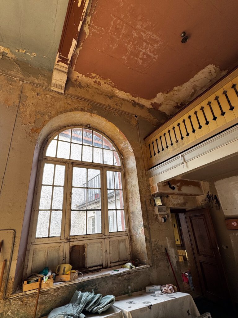 Nun gab es erstmal viel Arbeit: verputzen, streichen, Boden ausbessern, neue Fenster im Saal und in der Sektbar. Material wurde herangeschafft, Freunde und Familie aktiviert und Detlev Ziegler wandte seine bei früheren Projekten erworbenen handwerklichen Fähigkeiten an.